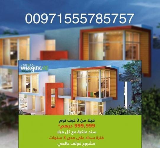 فلل للبيع في دبي بسعر مميز جدا يبدأ السعر من 999,999 (مليون درهم فقط ) وبالتقسيط على خمس سنوات