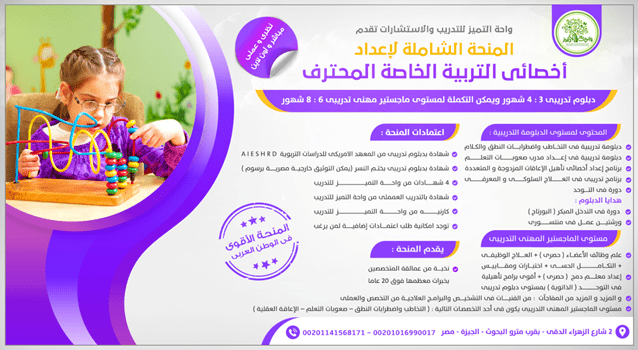 انضم لأقوى منحـــــة شاملـــة في إعــــداد أخصائـــى التــــربية الخـــــاصة فى مصر و الوطن العربي