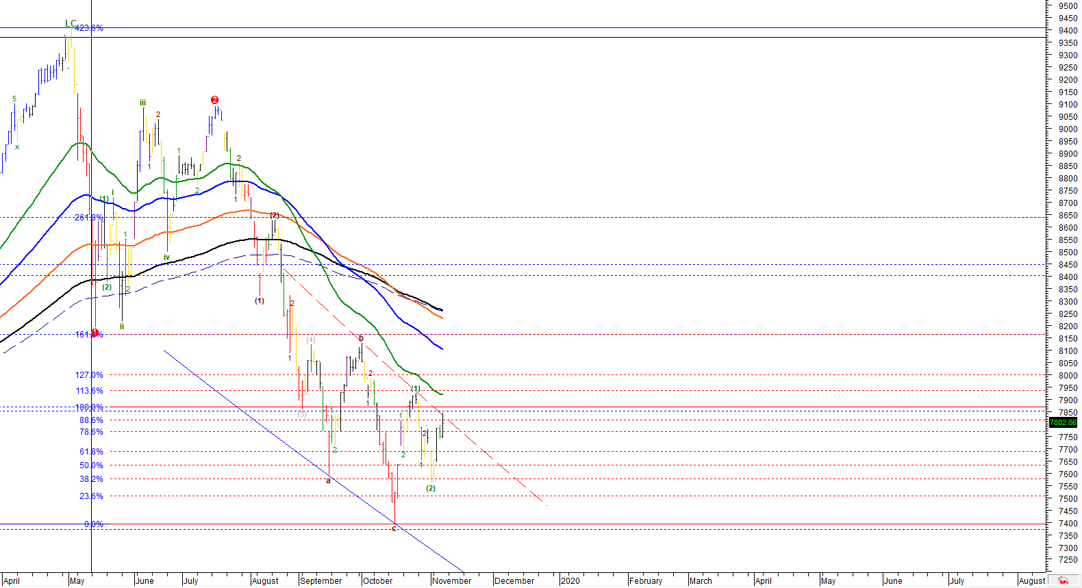 انصح بجني الارباح او البيع في القيادي لانه في افضل الحالات لو تم تجاوز الـ 8003 وارتفع التفاؤل فسنقف على الهدف