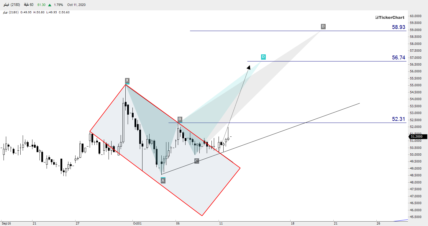 السهم لحظياً لديه هدفين عند 56.6 ثم 58.9 وهدف اسبوعي عند 63 ان شاءالله وهو سقف موجة السهم الاسبوعية