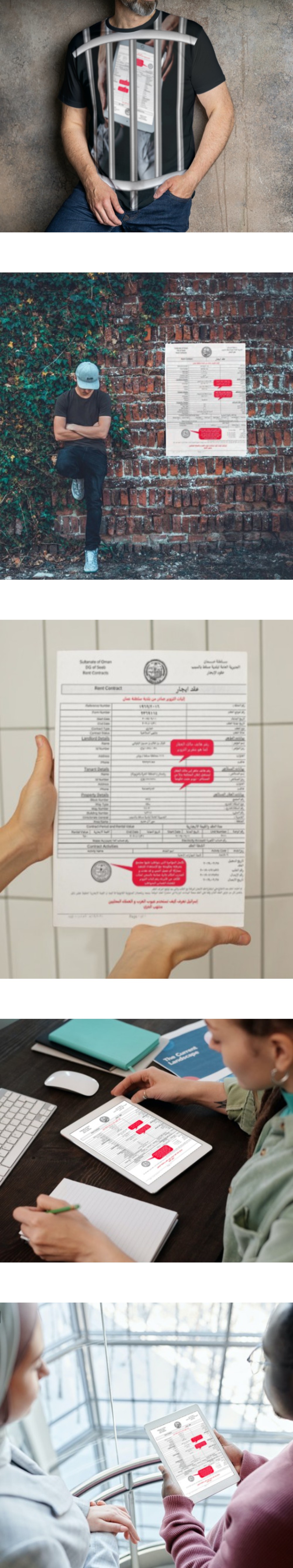 كما هو مذكور بأوراق البلدية العمانية تجد أن المالك زور في عقد الإيجار و سجل الهاتف بإسم إبنه, ثم يذهب للمحكمة وقت غيابك و يرفع اي قضية و يقول العنوان الجديد غير معروف فيأخذوا الرقم على المستند الذي تواطئت الحكومة معهم في تزويره لنهب الضيوف