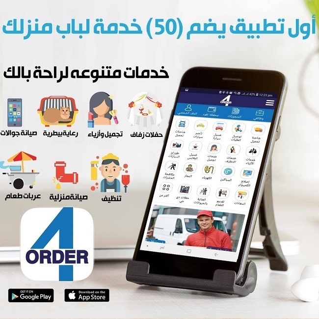 حمل الآن أول تطبيق سعودي يضم(50) خدمة لباب منزلك (توصيل طلبات، خدمات أزياء والتجميل، الصيانه المنزلية، تنظيم الحفلات، خدمة رعاية الحيوان، وصيانه الحاسب والجوال، صيانه وغسيل السيارات، تلميع السيارات، دراي كلين، تأجير سيارات ومكافحة الحشرات ونقل الأثاث) وغيرها الكثير