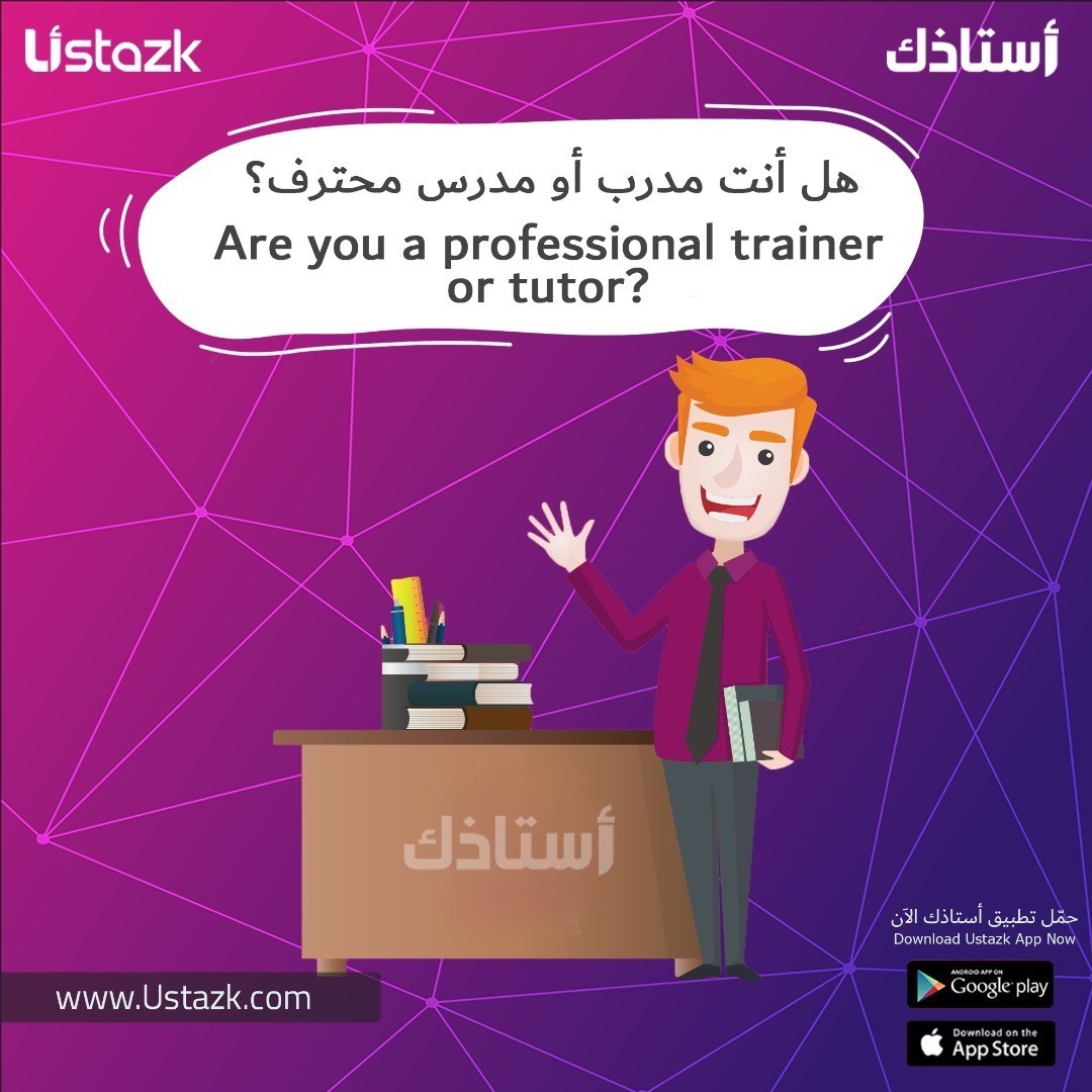 يمكنك الحصول على مدرب و مدرس خصوصي شخصي او أونلاين أو الانضمام لدورة اونلاين عن طريق موقع و تطبيق أستاذك www.ustazk.com